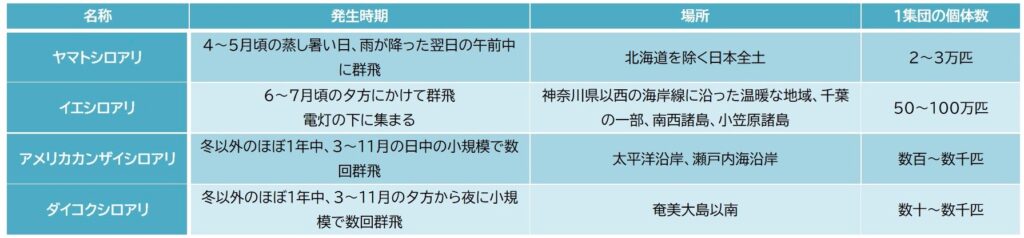 その他にも最近では「乾材シロアリ」の仲間である「アメリカカンザイシロアリ」や「ダイコクシロアリ」の被害も増加しています。