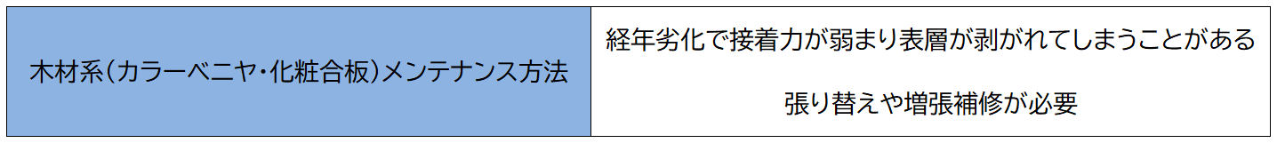 のメンテナンスが大事になります。表面の塗膜を保護すると湿気から起こる劣化を防ぐことが可能です。