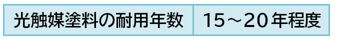 耐用年数は15~20年程度と長いのですが価格が非常に高く取り扱いも難しいので、光触媒塗料の特徴を熟知した業者へ依頼する必要があります。