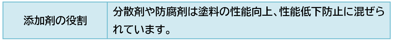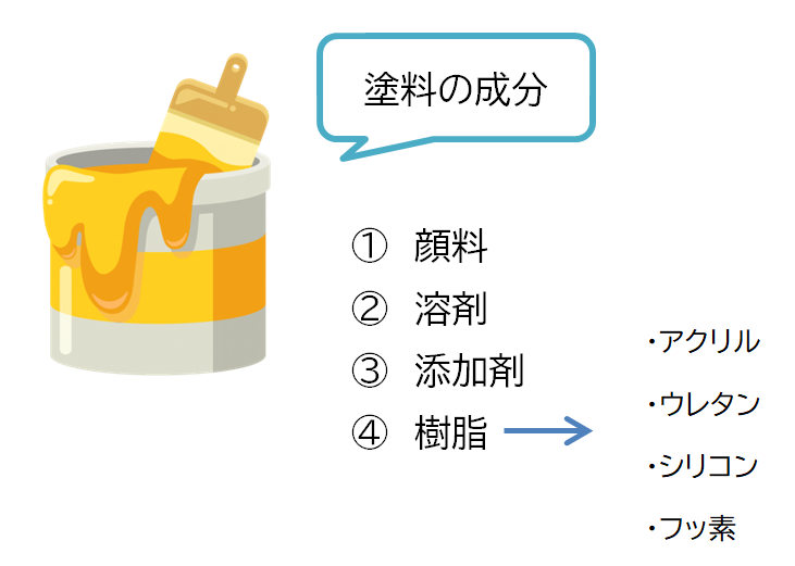 塗料は顔料・溶剤・添加物・樹脂で形成されていますがそれぞれの役割をご紹介します。