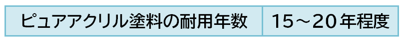 純度を上げたピュアアクリルは本来の高い耐久性(耐用年数)・弾性・耐候性・防水性・遮熱性を持つ塗料で、モルタル外壁に発生するクラックも抑えることができます。