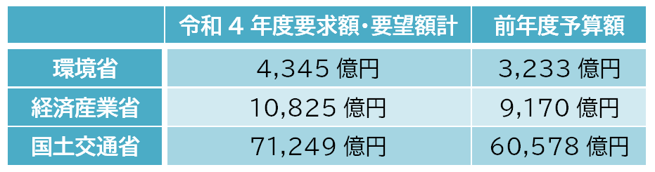 補助金制度は打ち切りになってしまうと復活することはほとんどないのですが、2021年に行われた「令和4年度一般会計概算要求・要望額」を調べると、補助金制度を取り扱っている環境相野建材産業省が前年度よりも多くの予算を請求していることがわかっています。