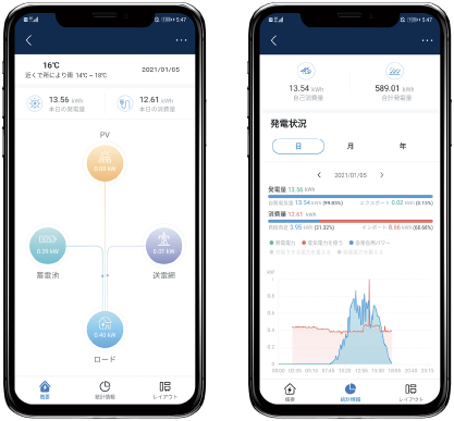 スマートフォンをお持ちであれば、外出先からでも発電状況が分かります。