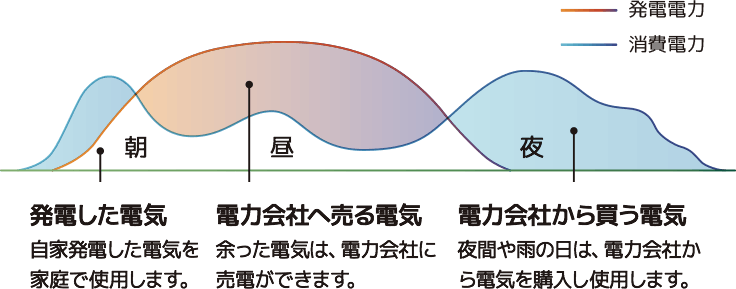 つくった電気を自家消費。使い切れず余った電気は売電。