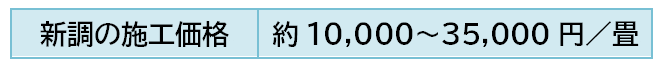 畳を新調する値段は、1畳につき10,000〜35,000円程度ですが、畳表・畳床・畳縁のグレードがどのくらいかによって価格が大きく異なり、高級品であればさらに高額になります。