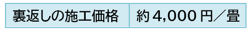 「裏返し」の料金は、1畳あたり4,000円前後と、畳の張替えの中では一番手間がかからず低価格です。