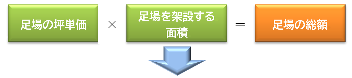 平米単価があり、これに足場を架設する面積をかけたものが足場の総額になります。