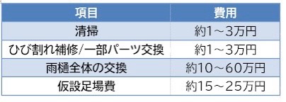 雨樋が劣化してきて、修理や交換をしたいと思っていてもどのくらいの費用が必要なのかわからず、不安でなかなか修理にふみ切ることができない方が多いと思います、まずは修理や交換に必要とされる一般的な費用について確認しておきましょう。