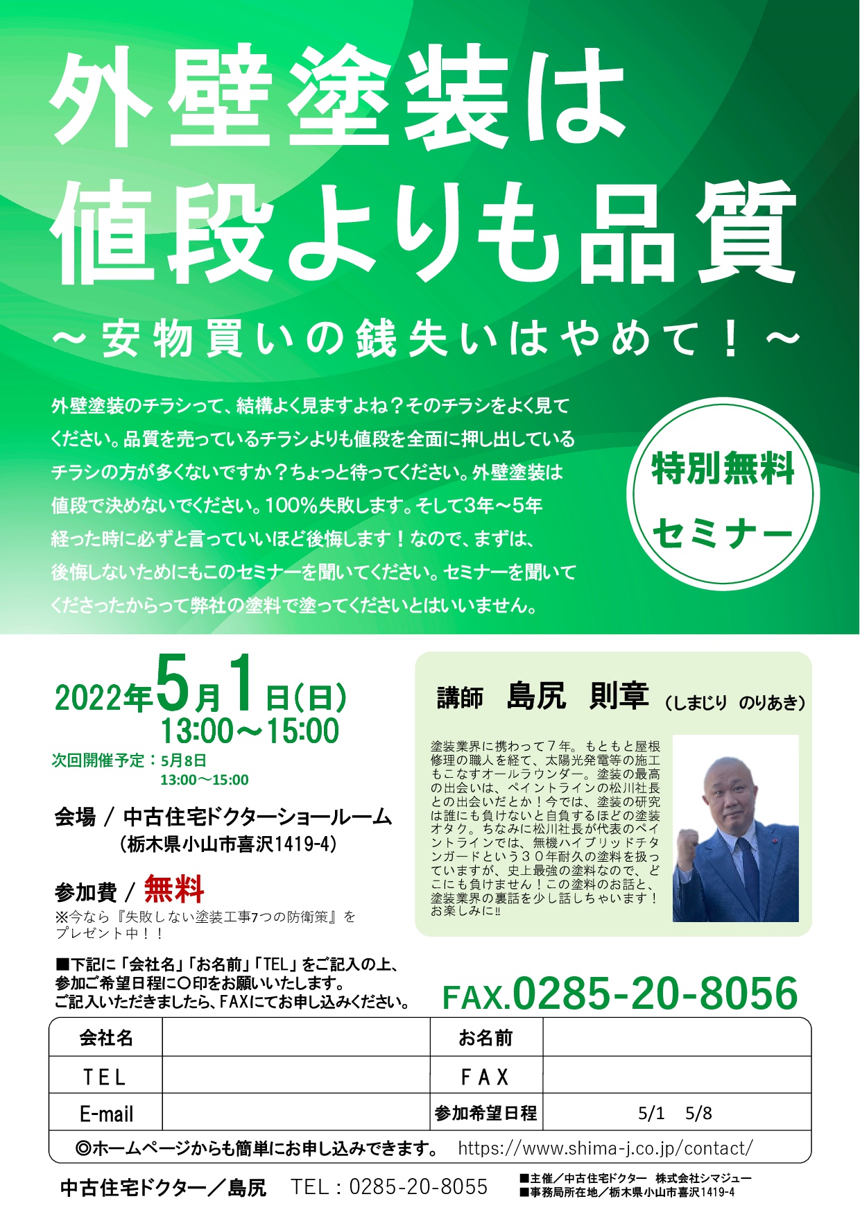 4月24日(日)・5月1日(日) 塗装セミナーを開催します!!