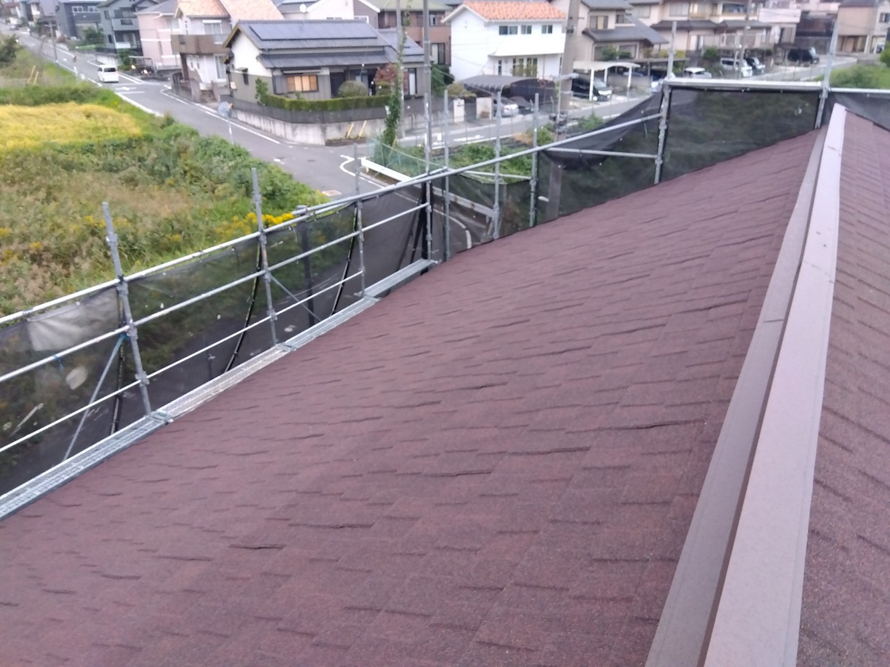愛知県知多郡東浦町 K様邸 屋根重ね葺き ヴィクセン(アンティークブラウン)工事・棟 ケラバ 雨押さえ(ガルバ材 ブラウン)