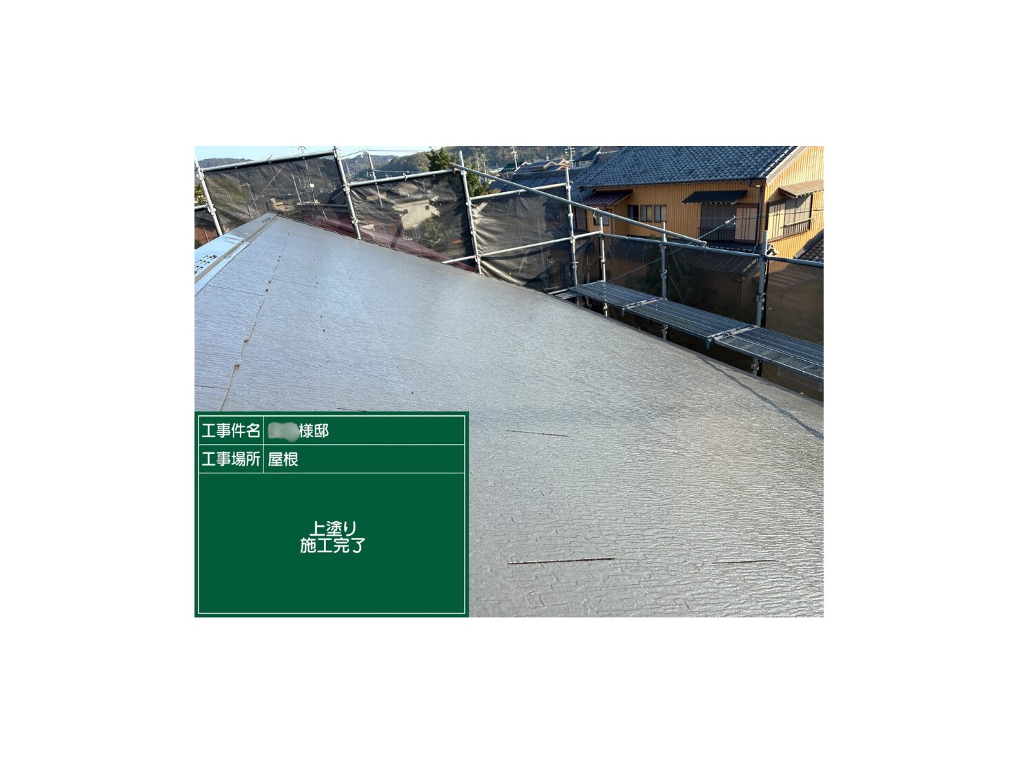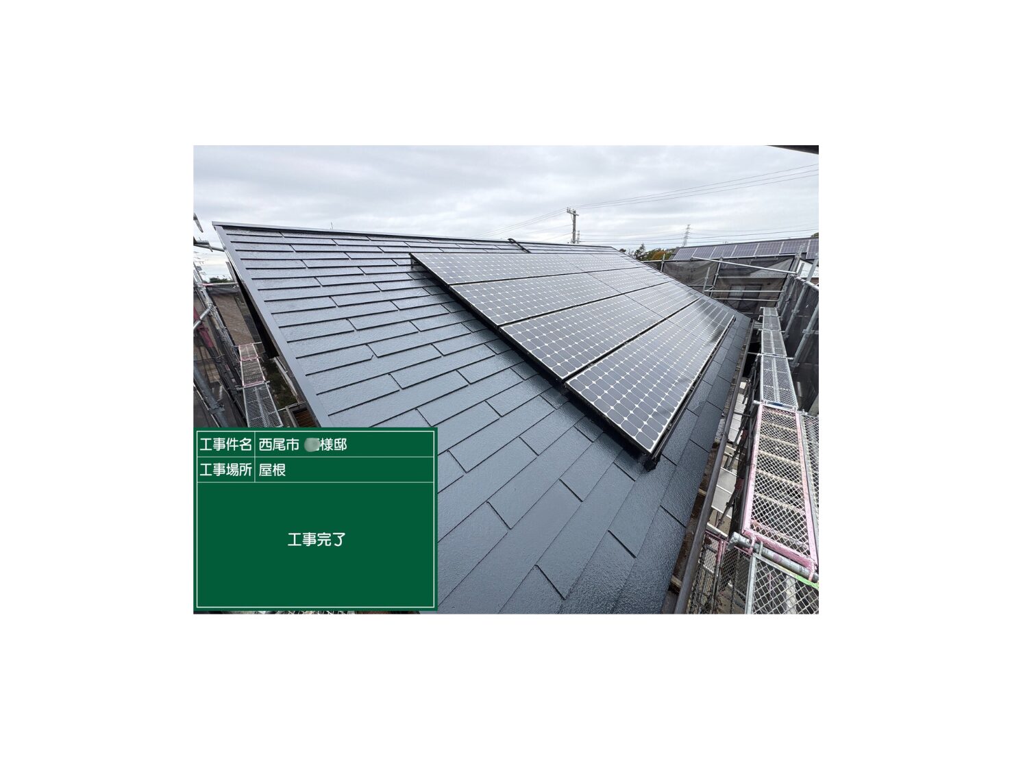 愛知県西尾市 N様邸 棟板金交換13m・屋根塗装120㎡(ゼニス)・太陽光パネル脱着(中34枚)・屋根樋除草清掃・防鳥ネット取付け60m・防鳥薬剤散布・エアコンダクト塞ぎ